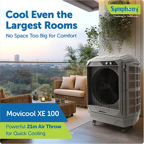 High-Performance Cooling: Symphony’s Movicool XE 100 offers powerful cooling for large spaces.